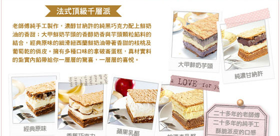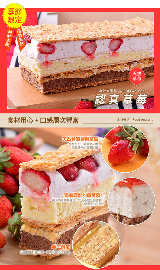 | 拿破崙先生-拿破崙蛋糕-一生必揪團一次明星商品!認真草莓口味登場!康熙來了、上班這黨事等電視節目大推薦!顛覆你對蛋糕的想像!只要189元即可購得【拿破崙先生】原價280元拿破崙蛋糕1條,口味:經典原味 售價:189 我要購買 |