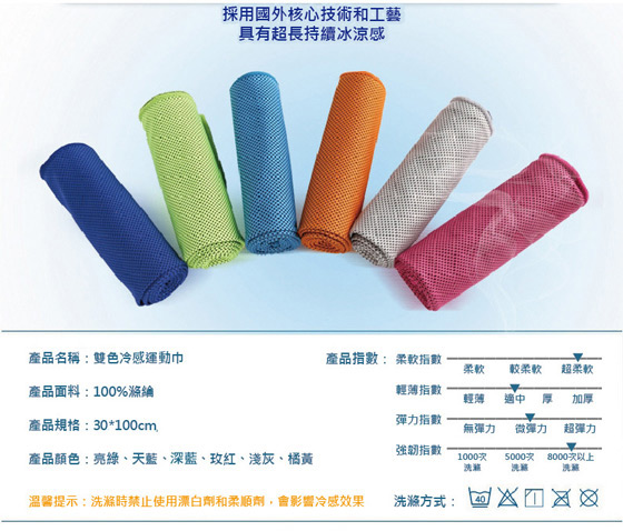 速冷雙色科技涼感絲冰巾也有些網路上部落客的評價也值得我們參考.google找一下有些人再熱烈討論速冷雙色科技涼感絲冰巾.雅虎購物、momo購物及博客來是我比較常去逛的EC網購平台,常常有優惠商品可撿便宜。超多的鄉民很都說速冷雙色科技涼感絲冰巾 無敵好的!現在很多線上購物EC平台都有銷售該商品! |  | 速冷雙色科技涼感絲冰巾-輕輕一甩,瞬間涼爽!運動健身、外出郊遊的抗熱小物,方便吸汗擦汗,輕薄好攜帶,讓您自由零負擔!平均每條最低只要69元起(含運)即可購得速冷雙色科技涼感絲冰巾任選1條/2條/4條/ 售價:69